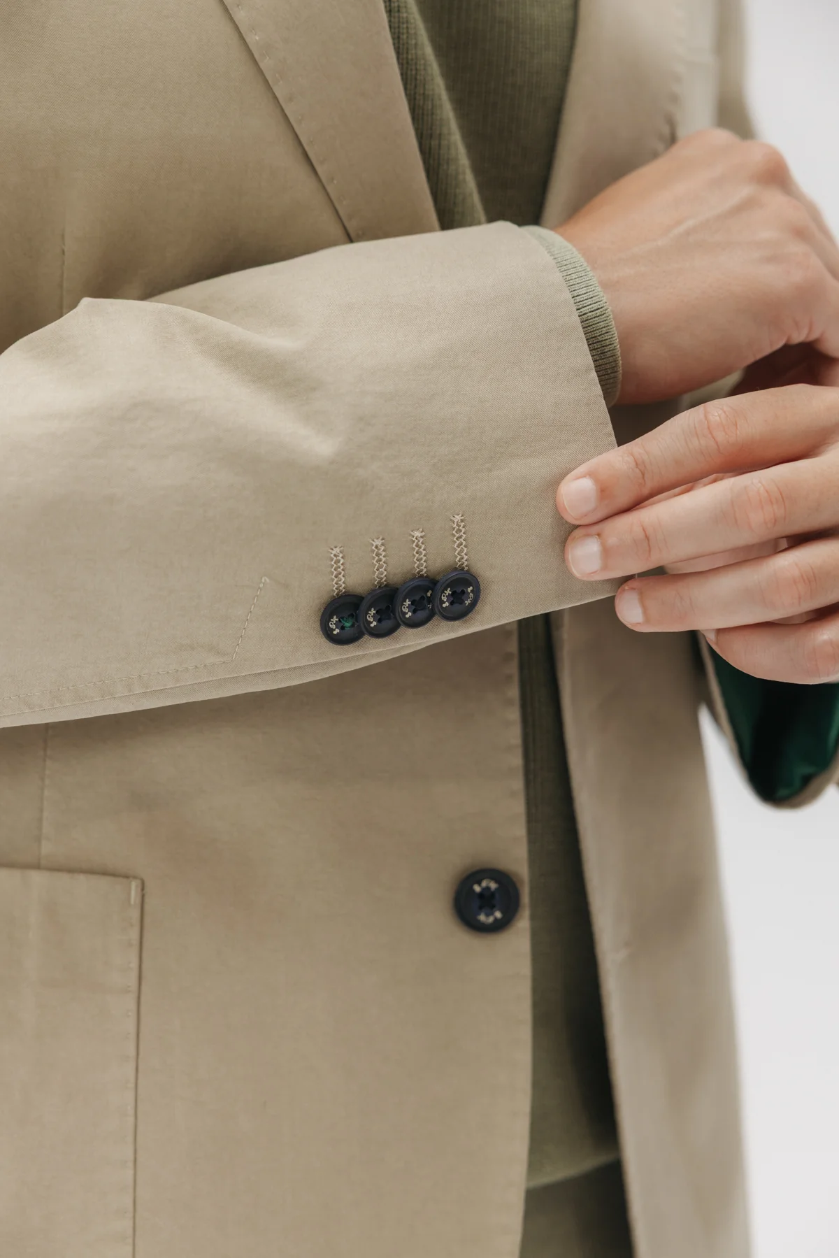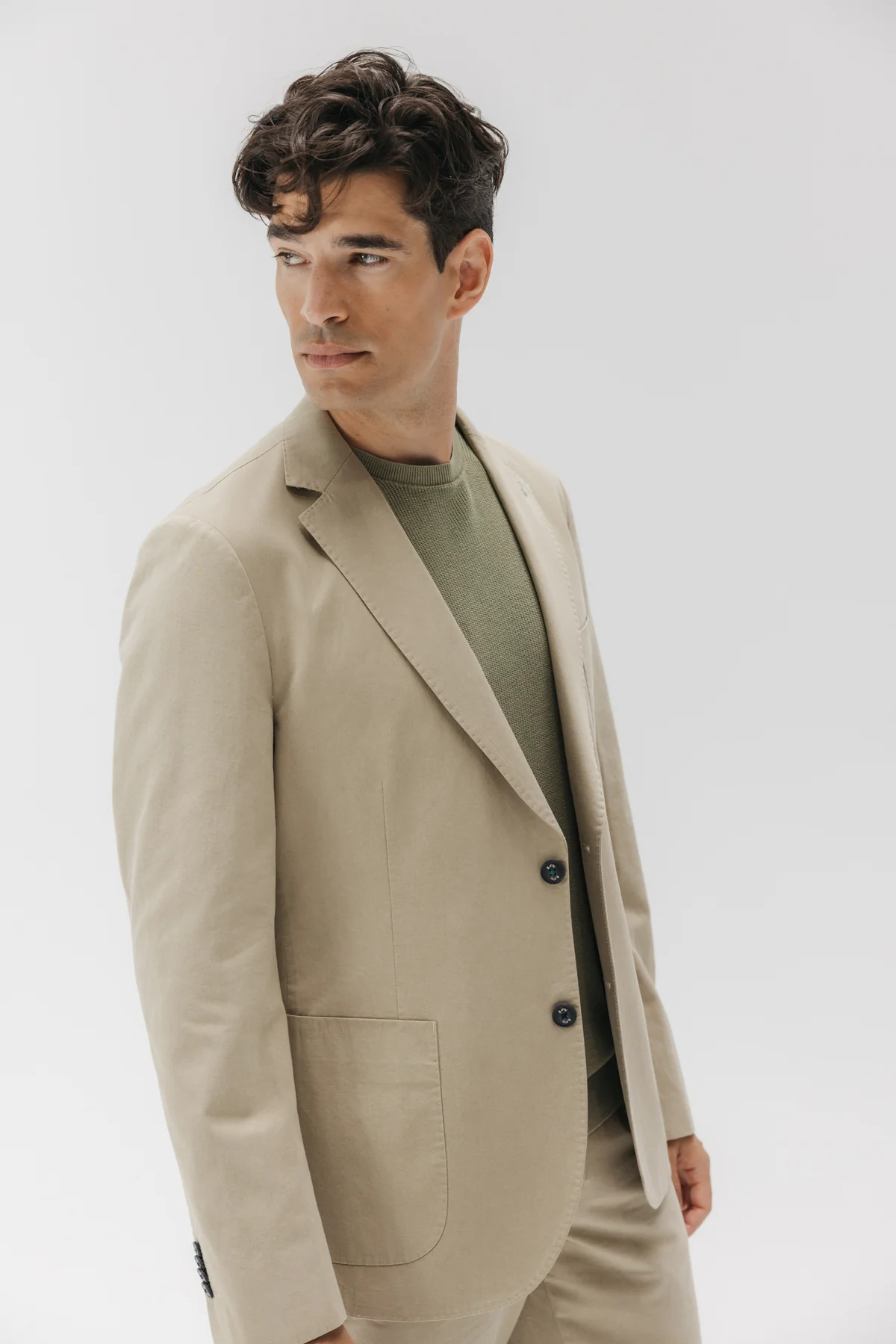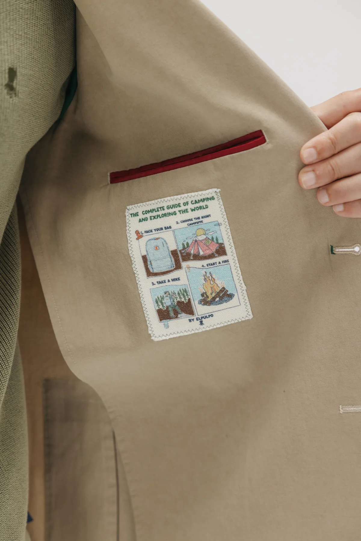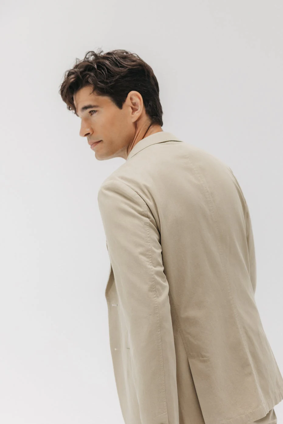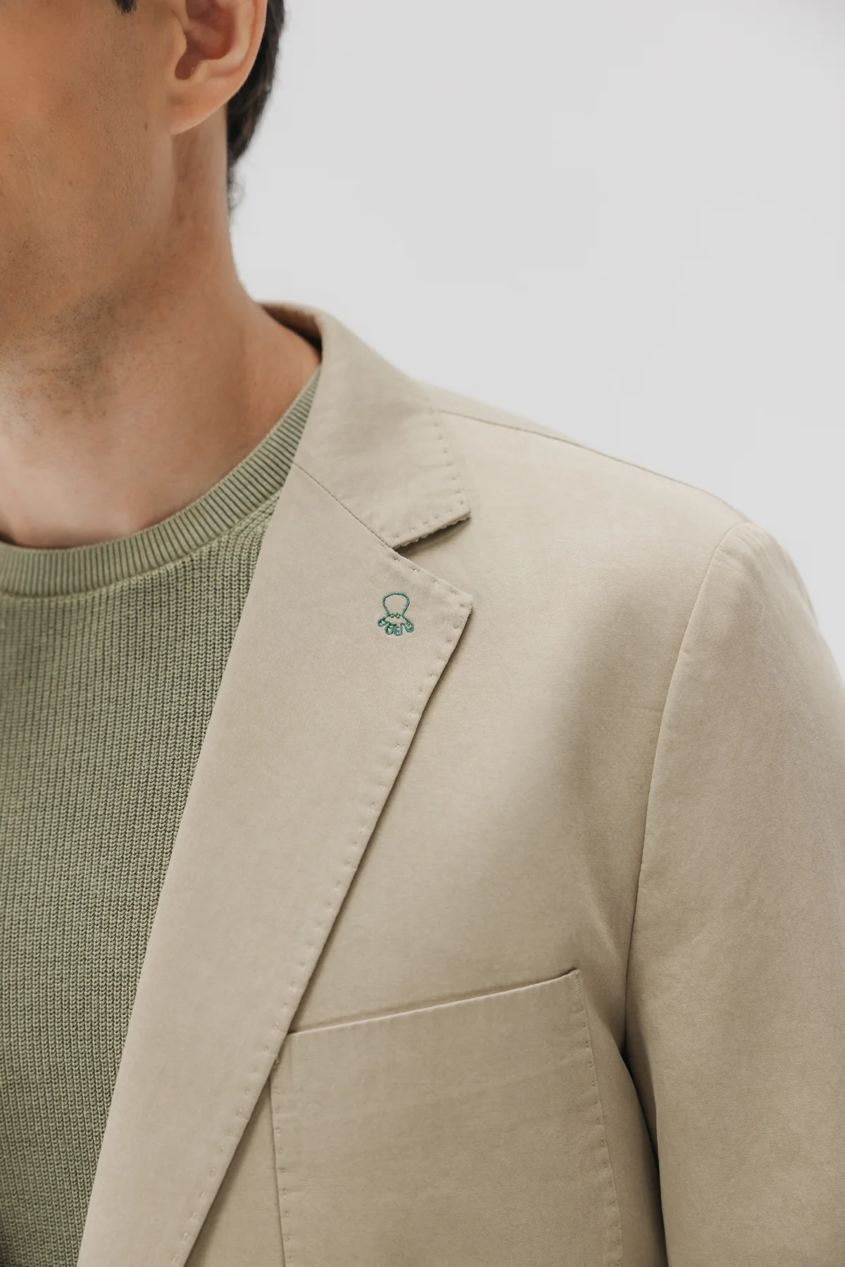 Americana color arena para hombre. Triple bolsillo delantero. Logotipo elPulpo bordado en solapa. Espalda con aberturas traseras. Parte interior con bolsillo y etiqueta especial elPulpo