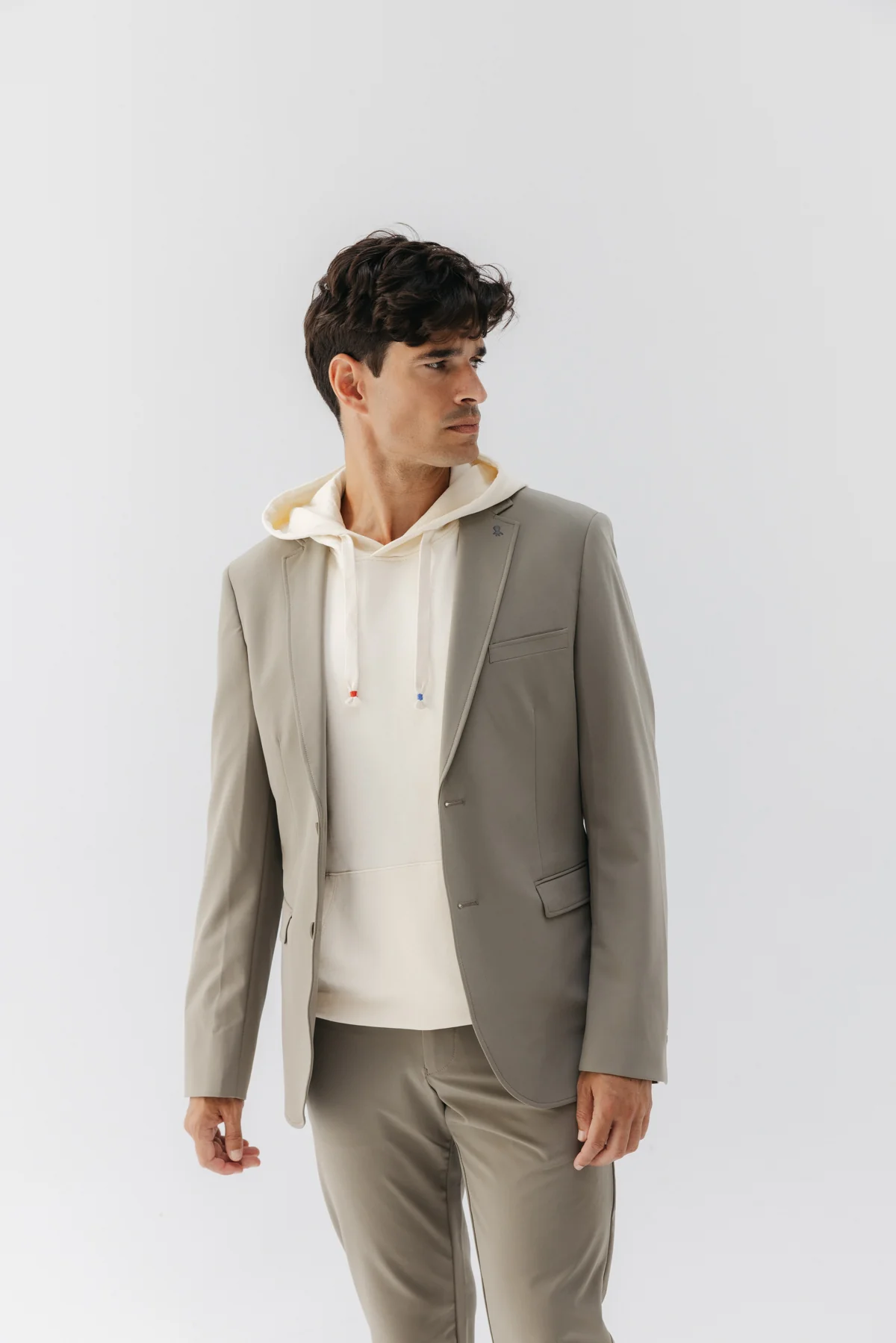Americana ultraligera en color topo para hombre. Triple bolsillo delantero. Logotipo elPulpo en solapa. Espalda con aberturas traseras. Parte interior con bolsillo.