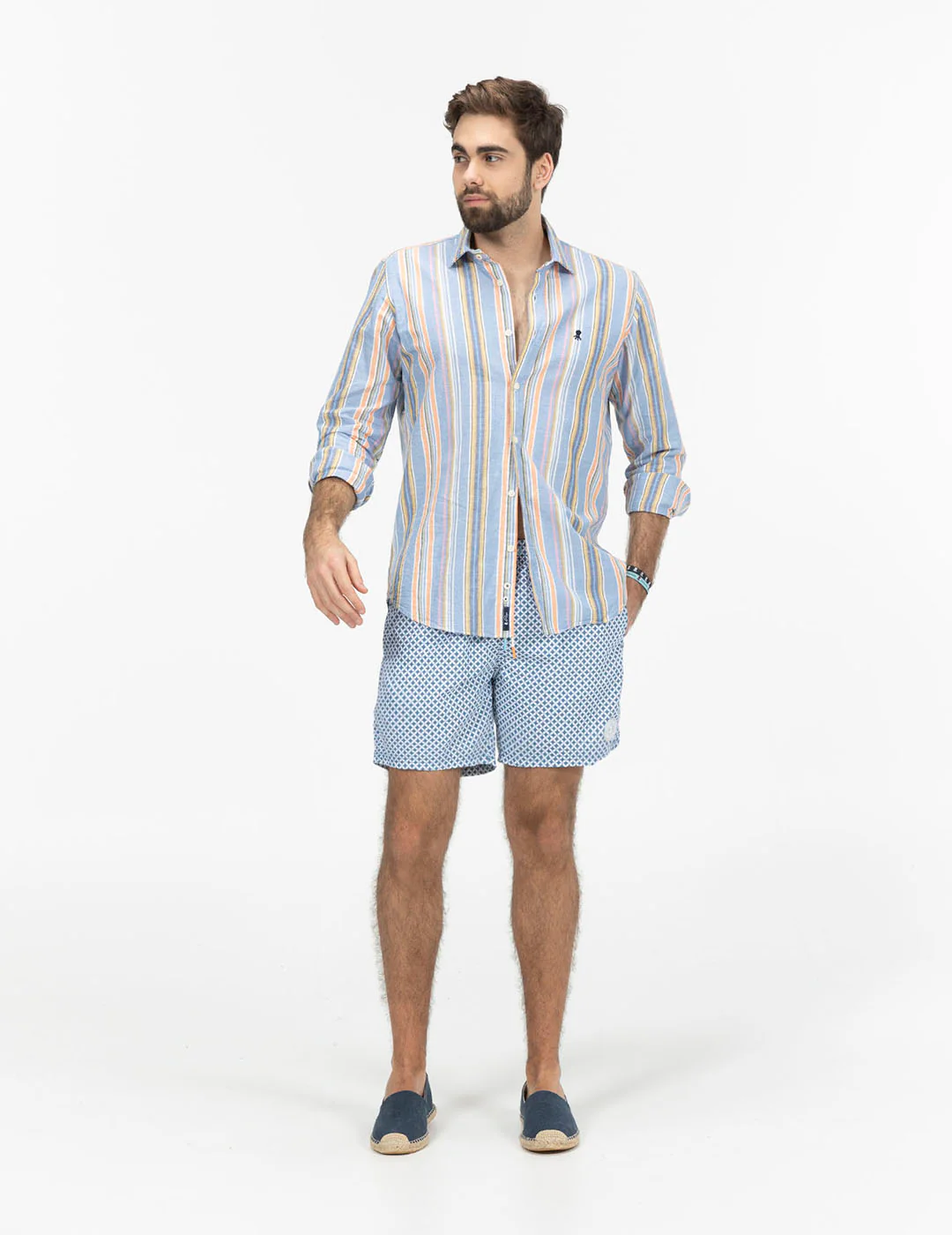 - Estampado geométrico a contraste.