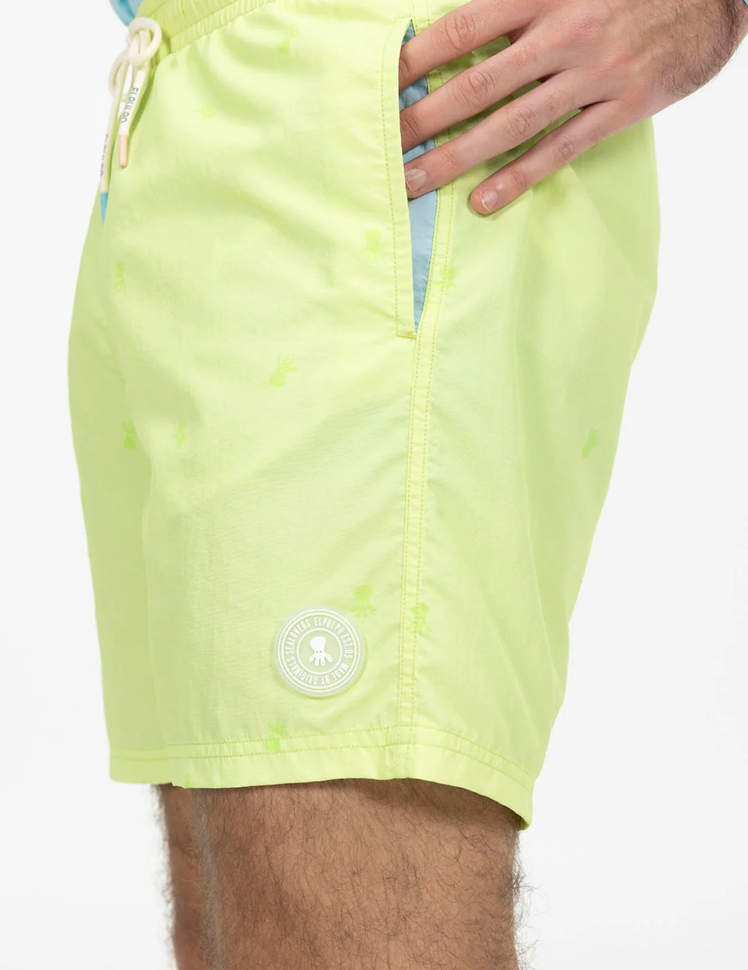 - Bañador lavado estampado all over color verde lima.