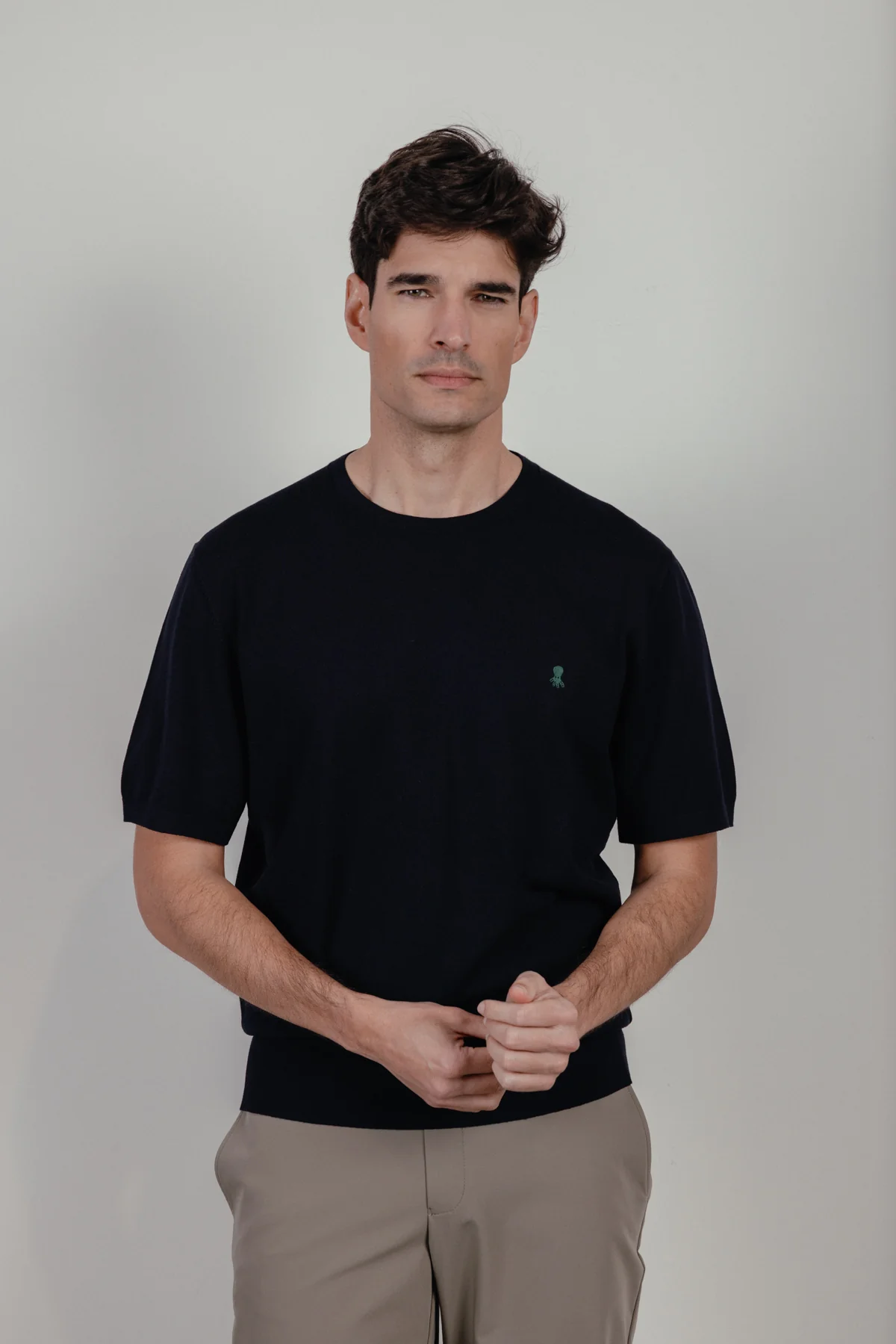 Camiseta de punto en azul marino con logo. Confeccionado en 85% viscosa y 15% poliamida. Logo elPulpo bordado a contraste en el pecho. Rib en cuello, mangas y bajo. Regular fit