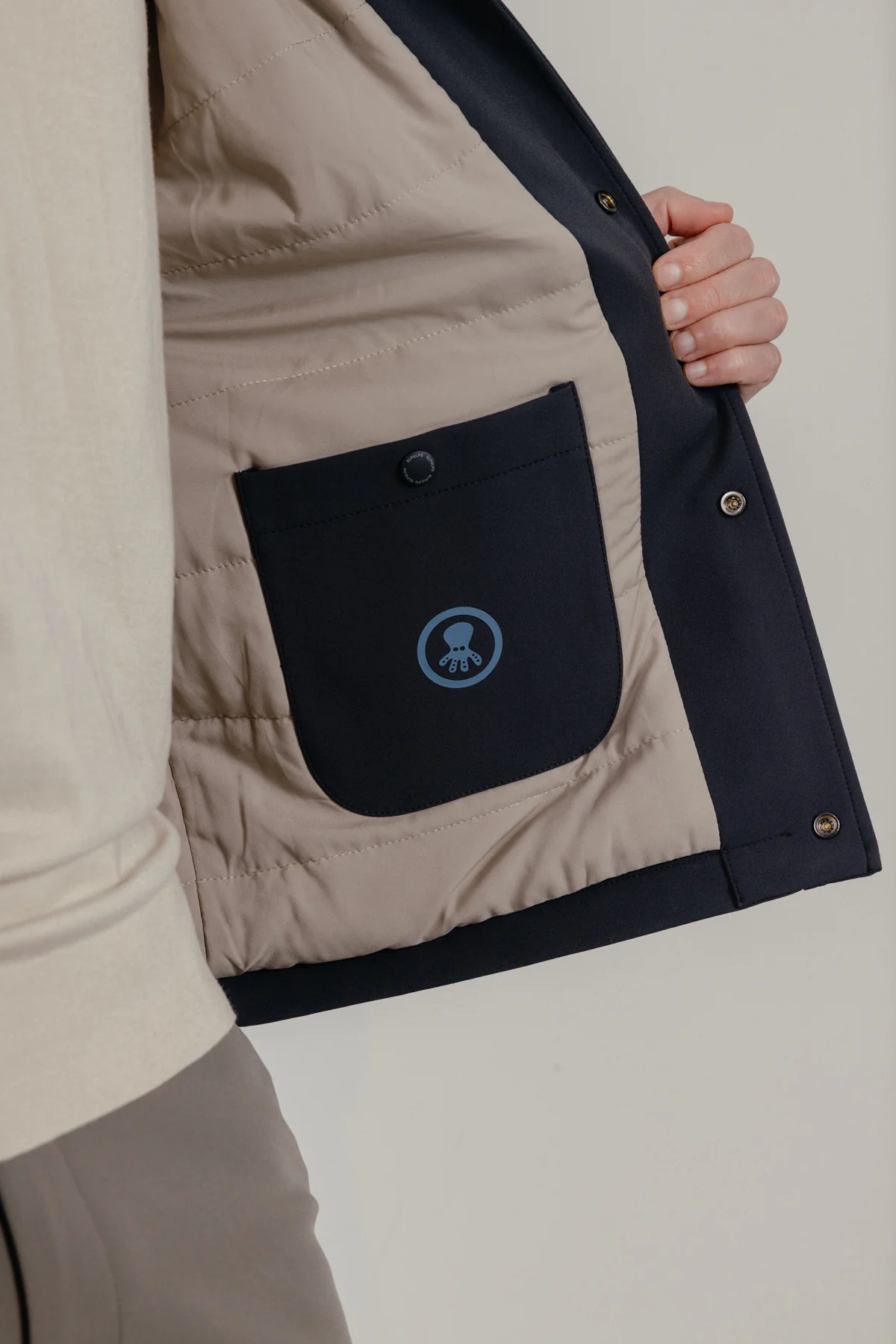 Esta cazadora técnica de elPulpo es la prenda exterior definitiva para el hombre que busca funcionalidad y tendencia. Con un corte relaxed fit que garantiza comodidad y libertad de movimiento, destaca por su tejido técnico de alta calidad y un sofisticado enguatado fino ideal para el entretiempo. El diseño incluye un cierre frontal de snap automático y un cuidado forro a contraste que aporta el toque distintivo de la marca, además de prácticos bolsillos interiores para mayor seguridad. Es la opción perfecta para un estilo diario impecable, combinando ligereza técnica con una estética urbana y versátil.